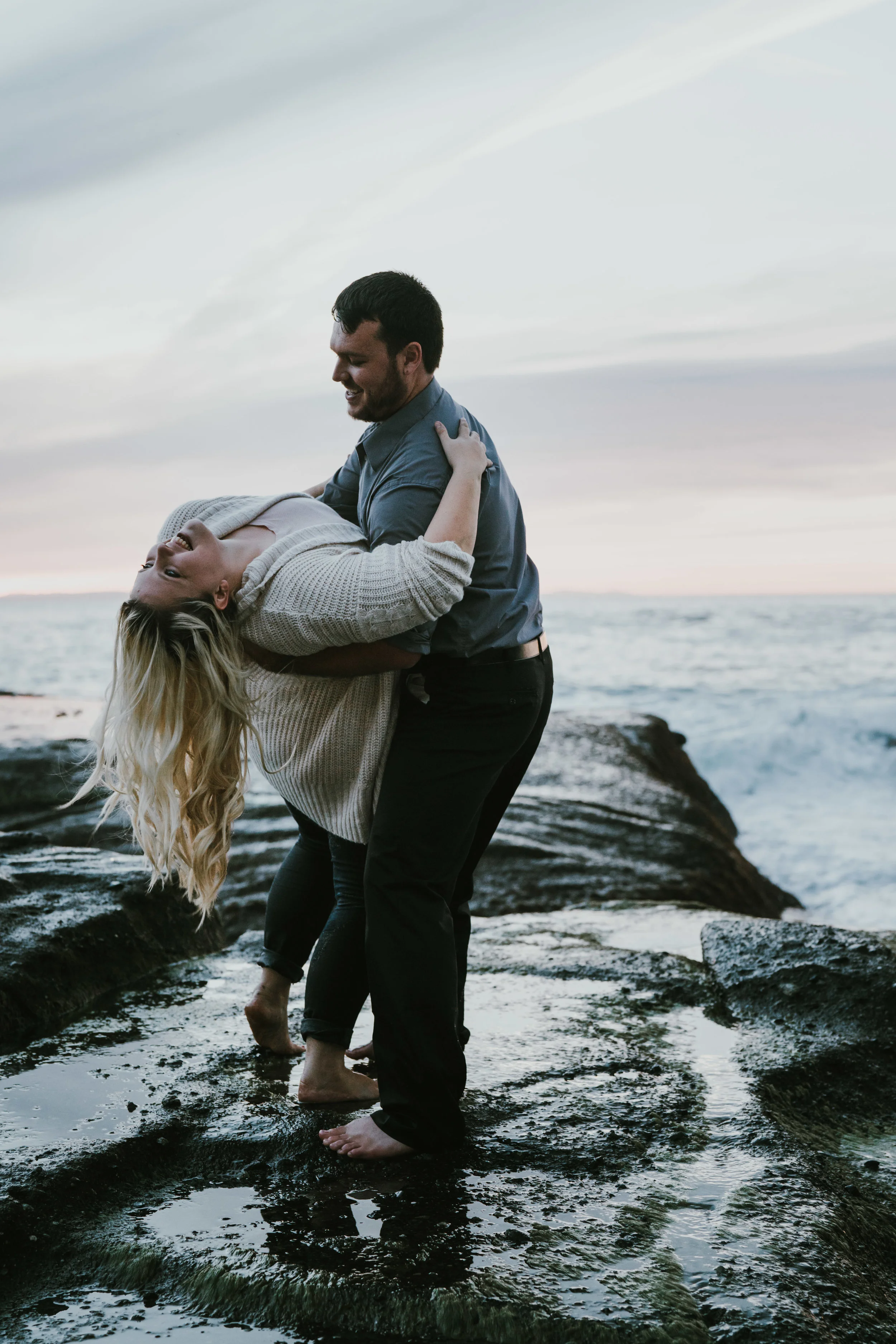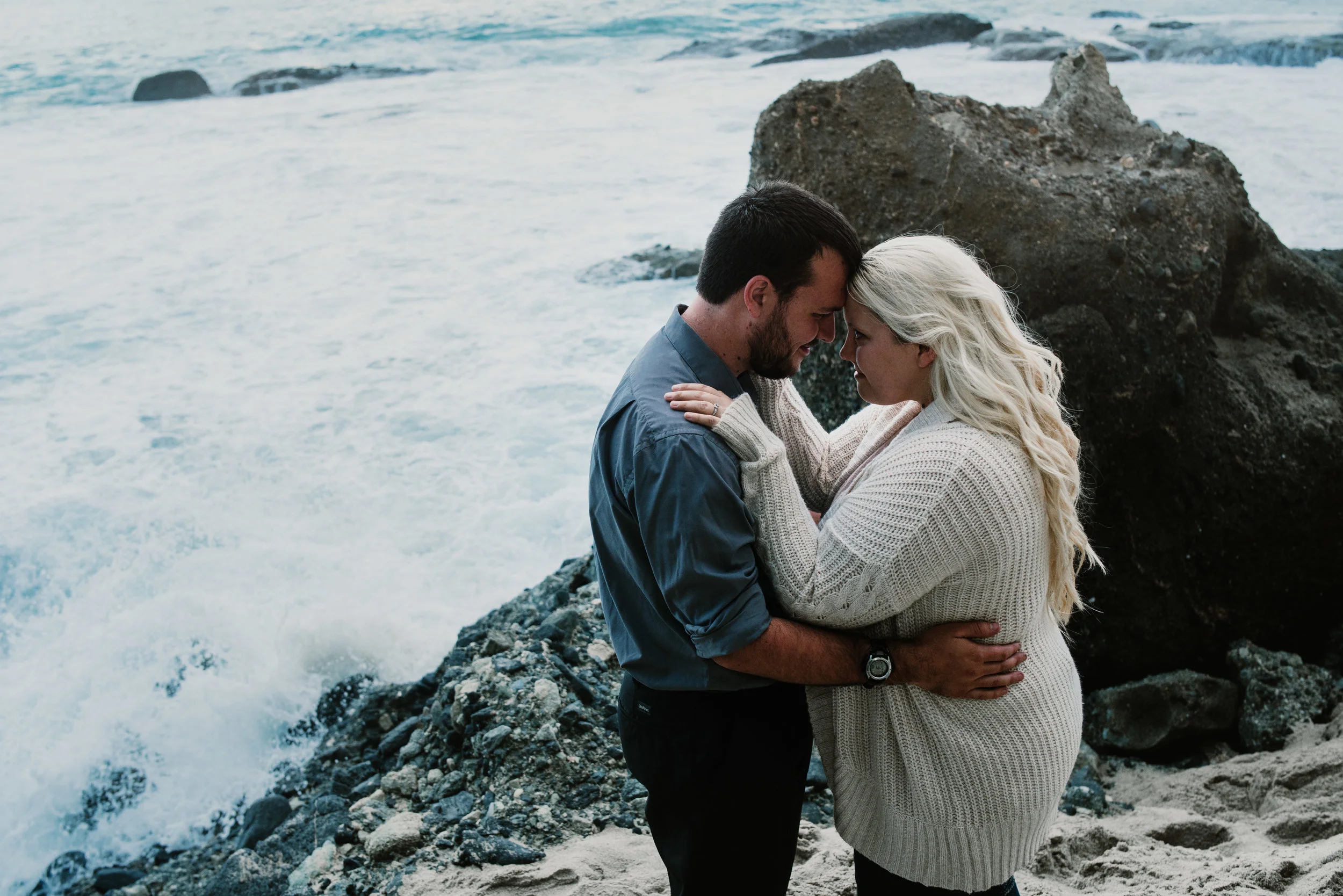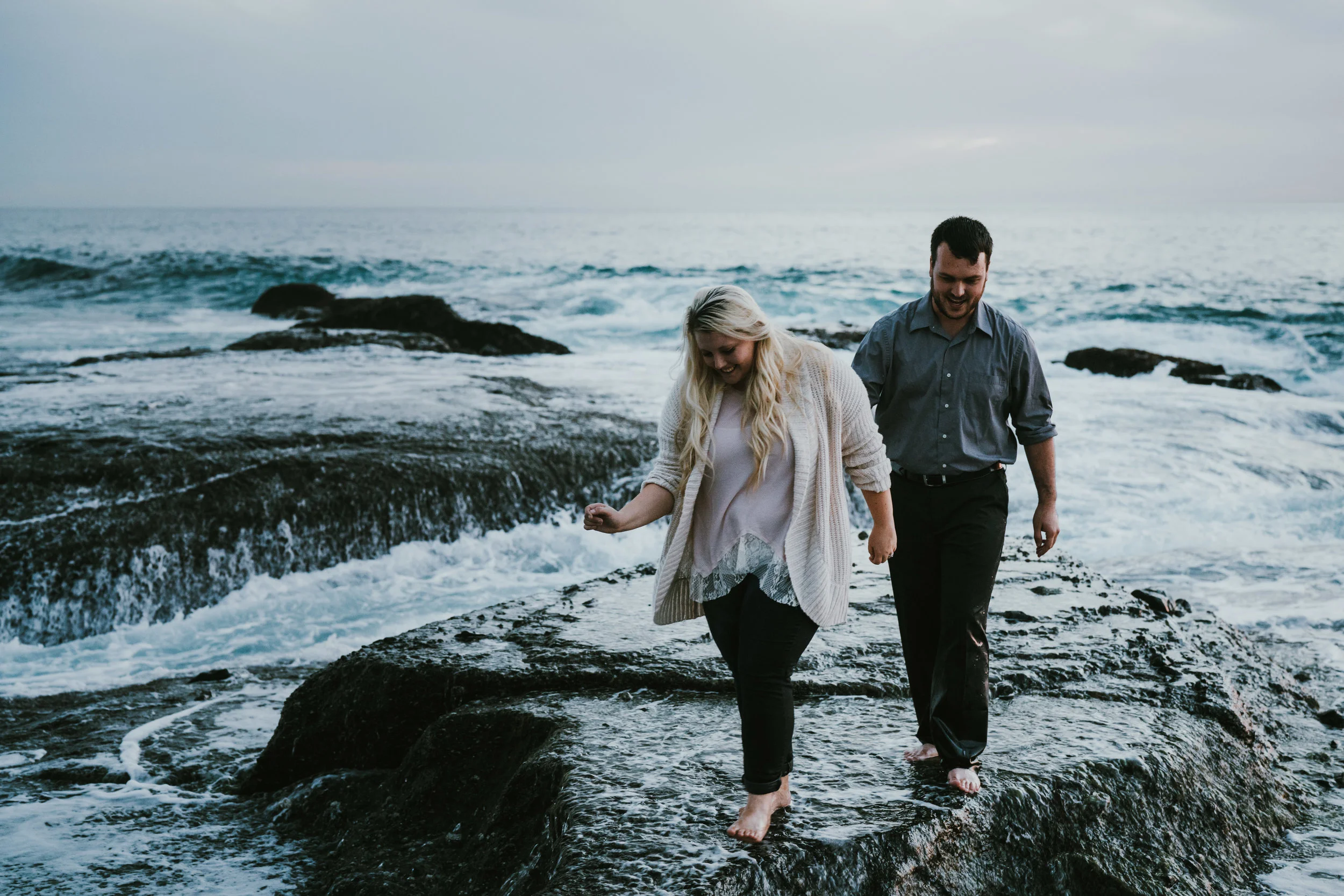 Tina and Tony were not afraid to get adventurous. They got pretty soaked from the waves at one point, but I think it was worth it! My favorite part of sessions are at the midway point when both the clients and me have become more comfortable. That's usually when couples forget about the camera and it just becomes the two of them. Their authentic interactions with each other are the moments I love to capture.